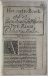 Nouvelle édition, dans sa traduction en néerlandais, de ce recueil populaire de l'humaniste, historien et chroniqueur espagnol Pedro Mexía (1496-1552). Sortant des presses de Paulus Aertsz Van Ravesteyn, elle est imprimée en caractères gothiques, le texte étant compris dans un cadre composé d'un filet noir. Le titre comporte un joli encadrement gravé sur bois.