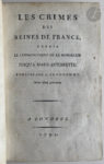 [PRUDHOMME (Louis-Marie]]. — Les Crimes des reines de France, depuis le commencement de la monarchie jusqu'à Marie-Antoinette. Londres, 1792. — In-8, demi-veau havane, dos à nerfs orné, tranches jaspées (reliure de l'époque).