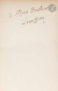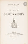 BLOY (Léon). — Un brelan d’excommuniés. — Paris : Nouvelle librairie parisienne, Albert Savine, 1889. — In-12, 182 x 118 : 128 pp., (2 ff. dernier blanc), couverture imprimée. Demi-percaline rouge à la Bradel, dos lisse, couverture...