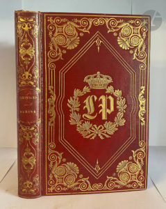 Maradan, 1813. — In-8, maroquin rouge à long grain, plats ornés d'un large encadrement doré composé d'écoinçons fleuronnés liés sur les bords droit et gauche par trois filets et un motif rocaille, chiffre LP couronné au centre, dans un encadrement losangé de trois filets dorés, dos lisse orné, roulette dorée intérieure, doublures et gardes de tabis bleu, tranches dorées (reliure de l'époque).