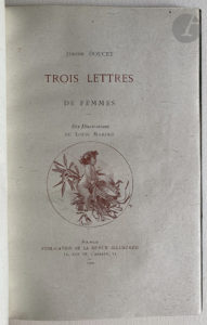 DOUCET (Jérôme). — Trois lettres de femmes. — Paris : Publication de la Revue illustrée, 1900. — In-8, demi-maroquin vert à coins, filets dorés, dos à nerfs orné et mosaïqué, tranches dorées, couverture conservée (H. Lesieur).