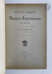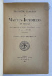 Ensemble des volumes donnant le compte rendu des séances des second et troisième congrès des maîtres-imprimeurs qui se sont tenus respectivement à Marseille et à Lille en 1895 et 1896 sous la présidence notamment de l'imprimeur lyonnais Adrien Storck (1851-1908) et de l'imprimeur lillois Léonard Danel (1818-1905). Outre les comptes rendus, on y trouve d'intéressants tableaux donnant notamment le « nom des imprimeurs après exécution du décret de 1810 à la limitation de leur nombre », le « nombre d'imprimeries en lettres existantes en France au 1er janvier 1867 », etc.