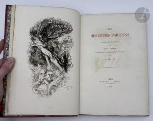 MORIN (Louis). — Les Dimanches parisiens. — Notes d'un décadent. — Paris : Librairie L. Conquet, 1898. — In-8, demi-maroquin orange à coins, filets dorés, dos à nerfs orné de fleurs dorées et mosaïquées, tête dorée, non rogné,...