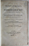 - [DORIS (Charles)]. Chagrins domestiques de Napoléon Bonaparte à l'isle Sainte- Hélène ; précédé de faits historiques de la plus haute importance ; le tout de la main de Napoléon, ou écrit sous sa dictée. Papiers enlevés de son cabinet dans la nuit du 4 au 5 mai 1821, et publiés par Edwige Santiné, ex-huissier du cabinet de Napoléon Bonaparte à Sainte-Hélène. Suivi de notes précieuses sur les six derniers mois de la vie de Napoléon. Paris : Germain Mathiot Septembre 1821. — In-8, demi-maroquin rouge, dos lisse orné, non rogné (reliure de l'époque).