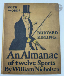 NICHOLSON (William). — An Almanac of twelve Sports. — Words by Rudyard Kipling. — Londres : William Heinemann, 1898. — In-4, cartonnage illustré de l'éditeur.