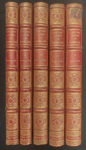 RABELAIS (François). — Les Cinq livres de F. Rabelais publiés avec des variantes et un glossaire par P. Chéron. — Paris : Librairie des Bibliophiles, 1876-1877. — 5 volumes in-16, demi-maroquin rouge à coins, filets dorés, dos à nerfs...