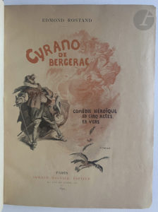 ROSTAND (Edmond). — Cyrano de Bergerac. Drame en cinq actes. — Paris : Armand Magnier, 1899. — In-4, demi-maroquin rouge à coins, filets dorés, dos à nerfs orné, tête dorée, non rogné, couverture et dos conservés (Durvand).