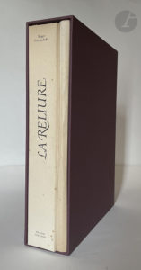 Un des 250 exemplaires de tête sur papier Rivoli 25% chiffon des Papeteries Arjo-Wiggins, accompagnés d'un portfolio contenant un choix de photographies originales de reliures rares et curieuses conservées à la Bibliothèque nationale de France, le tout dans une couverture en papier chiffon Moulin du Gué, sous étui confectionné par Bernard Duval.