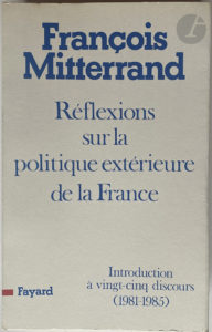 MITTERRAND (François). — Réflexions sur la politique extérieure de la France. — Introduction à vingt-cinq discours (1981-1985). — Paris : Fayard, [1986]. — In-8, broché, couverture rempliée.