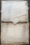 Ensemble de plusieurs centaines feuilles anciennes de tous formats, du XVIe au XXe siècles, essentiellement des défaits de reliures, auxquelles sont joints plusieurs dizaines de défaits de gardes de papier marbré de tous formats également et d'époque différentes