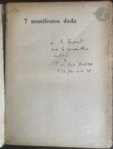 Envoi autographe signé de l'auteur sur le faux titre : « à M. Poupard // avec la sympathie // entière // de // Tristan Tzara // le 26 Janvier 48. »