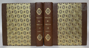 ZOLA (Émile). — Théâtre. Notes et Commentaires de Maurice Le Blond. — Texte de l'édition Eugène Fasquelle. — Paris : François Bernouard, [1927]. — 2 volumes in-8, maroquin havane, grande bande verticale décorée de losanges dorés au...