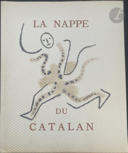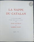 COCTEAU (Jean) - HUGNET (Georges). — La Nappe du Catalan. Paris : s.n., 1952. — In-4, en cahiers cousus, sous couverture rempliée en papier gaufré imitant une nappe.
