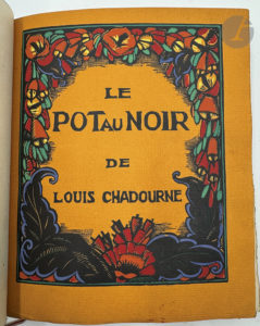 FALKÉ (Pierre) - CHADOURNE (Louis). — Le Pot au noir. Scènes et Figures des Tropiques. — Paris : G. et A. Mornay, 1922. — In-8, maroquin noir, composition florales différentes mosaïquées de différents maroquins sur les plats, celle du...