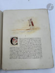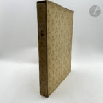 Un des 360 exemplaires sur vélin blanc Montgolfier d'Annonay. Dos de la chemise passé, charnière du premier plat fendue.