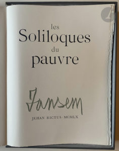 JANSEM (Jean) - RICTUS (Jehan). — Les Soliloques du pauvre. — [Paris : Pierre du Tartas], 1960. — In-folio, en feuilles, emboîtage de l'éditeur.