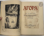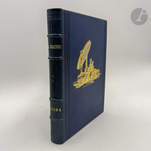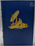 LOBEL-RICHE (Almery) - BAUDU (René). — Agora. — Paris : Pour le compte des auteurs, 1925. — In-4, maroquin bleu foncé, filets verticaux noirs et plaque dorée et mosaïquée figurant un nécessaire de toilettes au centre sur les plats, dos à...
