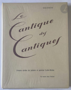 LOBEL-RICHE (Alméry) - SALOMON. — Le Cantique des cantiques. — S.l. : [Aux dépens de l'artiste, 1947]. — In-4, en feuilles, couverture rempliée, chemise et étui de l'éditeur.