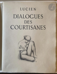 Très belle édition des « Dialogues des courtisanes » de Lucien dans la traduction française de Charles Astruc, publiée par Henri Creuzevault et Dina Vierny. Elle est ornée de 35 lithographies originales d'Aristide MAILLOL (1861-1944), dont une sur le titre, 7 à pleine page et 27 dans le texte.