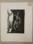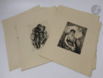 Exemplaire de collaborateur sur vieux japon, spécialement imprimé pour le graveur Achille Ouvré, portant la signature autographe de ce dernier à la justification et enrichi d'une suite des gravures sur cuivre sur japon ancien, de 6 épreuves d'état, de 3 exemplaires du prospectus, dont l'un en état unique, ainsi que d'un essai unique de mise en page du titre.
