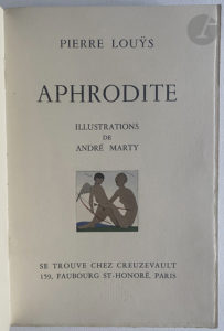 MARTY (André) - LOUŸS (Pierre). — Aphrodite. — Paris : Creuzevault, [1936]. — In-8, broché, couverture rempliée, chemise et étui de l'éditeur.