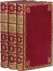 Édition originale. Ce recueil est l'œuvre du père jésuite Pierre Brunoy (1688-1742). Professeur de rhétorique à Caen, précepteur du prince de Talmont, il enseigna au collège Louis-le-Grand à Paris et collabora au Journal de Trévoux de 1722 à 1739. Un volume de supplément renfermant les tragédies de Sophocle, non joint, parut en 1773. L'ouvrage est illustré d’un frontispice gravé par Tardieu d’après Cazes et d’une carte dépliante d’une partie de la Grèce dressée par Henri Liébaux et gravée par Borde en tête du tome III, d'une belle vignette allégorique gravée sur cuivre répétée aux trois titres, et de grands bandeaux gravés sur cuivre par Bacquoy d’après Humblot. Exemplaire sur grand papier dans une reliure du temps fort décorative et d’une grande fraîcheur. Ex-dono manuscrit du XIXe siècle : al Senor Duque de Rivas signé Perez. Manque la planche de monnaies. Infimes traces d’usage, un mors fendu en pied, reliure en belle condition néanmoins. Des feuillets ternis, légères rousseurs sur les titres. Cohen, 191-192.
