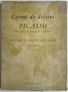 PICASSO (Pablo). — Carnet de dessins de Picasso reproduits au format de l'original. — Paris : Cahiers d'Art, 1948. — In-folio, cartonnage noir de l'éditeur o dos de toile rouge de l'éditeur, sous étui imprimé.