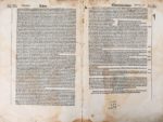 FORESTI DE BERGAME (Jacobus Philippus). SUPPLEMENTUM CHRONICARUM. Venise, Bernardinus Rizus, 1490. In folio gothique de [11]-261 feuillets, velin rigide (reliure de l'époque). Seconde édition illustrée de cette célèbre chronique, la première est parue en 1483. Elle contient au début du texte un grand bois dans un bel encadrement représentant la création du monde, 3 autres grands bois dont la Tour de Babel qui paraît pour la première fois et 63 TRES JOLIES VUES de ville dont Rome et Venise qui sont particulièrement belles. Cernes, quelques traces d'humidité en marge de fond, et petites galeries avec atteinte de quelques lettres (Sander 917) (ISTC ij00211000) (Essling 343).