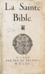 BIBLE. LA SAINTE BIBLE. Lyon, Jean de Tournes, 1554. 3 parties de [12]-507-[1]; 433-[1]-[16]; 248 …