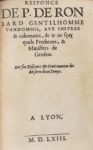 RONSARD (P. de). RESPONCE AUX INJURES ET CALOMNIES, de ie ne say quels Prédicans, & Ministres de …