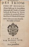 [LYON]. ENSEMBLE DE 7 PLAQUETTES IN-12, toutes imprimées à Lyon au XVI° siècle, reliées diversement au XIX°. DISCOURS SUR L'ESPOUVANTABLE et merveilleux desbordement du Rosne dans et alentour de la ville de Lyon (Rigaud, 1570) - LETTRE PATENTE du Roy envoyée à Monsieur le Sénéchal de Lyon. (Jove et Pillehotte, 1575) - REIGLEMENS ORDONNEZ en exécution des edicts du Roy contre ceux de la religion prétendue réformée... (Julliéron et Ancelin, 1594) - ORDONNANCES ou articles concluds et arrestez en l'assemblée générale tenue au consulat de Lyon... (Lyon, Ancelin, 1694) - DISCOURS sur la réduction de la ville de Lyon à l'obéissance du Roy. (Thomas Soubron, 1594) - ARREST de la Court de parlement à Paris, donné sur le payement des dismes au pays de Lyonnois. (Pierre Merant, 1567) - BENEDITTI. Discours des triomphes et Resjouissances faicts par la Seigneurie de Venise à l'entrée de Henry de Valois. (Michel Jove, 1574). Bon état général.
