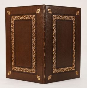 DU VERDIER (A.). LES OMONIMES. Satire des mœurs corrompues de ce siècle… Lyon, Antoine Gryphius [à la fin : de l'imprimerie de Pierre Roussin], 1572. In-4° de 12 feuillets, maroquin acajou, guirlande de motifs floraux dorés sur les plats, filets à froid, dos à nerfs orné, roulette intérieure dorée, tranches dorées (C. Hardy). Edition originale de cette pièce singulière et rare. L'auteur donne le nom d'Omonimes (Homonymes) à ses vers parce que les rimes sont formées de mots ayant le même son, mais présentant un sens différent. Ainsi: L'homme qui est lascif et se montre paillard Rend courts ses ans et biens, à la fin n'a pas liard, Dissipant sa substance après plus de dix femmes, Encourt l'ire de Dieu et du peuple diffames, Tout péché en dépend, à taverne à bordeau L'ivrognerie a lieu, jamais n'y aborde l'eau. Très bel exemplaire remarquablement relié. (Rothschild I, n°749) (Baudrier VIII, 359).