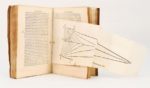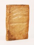 VINET (Elie). L'ARPANTERIE ET LA MANIERE DE FERE LES SOLAIRES QUE COMMUNEMANT ON APELE QUADRANS. Bordeaux, S. Millanges, 1583. 2 parties en 1 volume petit in-4°, velin souple (reliure de l'époque). Dans son avant-propos, Vinet donne son motif pour écrire ce livre: A son retour du Portugal en 1549 il constate qu'à la suite de la rébellion contre la gabelle la suppression de toutes les cloches et horloges de Bordeaux a été décidée par le roi Henri II, d'où l'utilité pour les Bordelais de maîtriser la technique des cadrans solaires pour avoir l'heure. Seconde édition augmentée de la manière de faire les solaires et cadrans, avec sa page de titre daté. Nombreux croquis, bois dans le texte et une planche dépliante. Cernes clairs, mince galerie sur plusieurs feuillets, l'avant dernier feuillet de la première partie est manquant. Reliure joliment patinée. (USTC 19405, 8 ex.).