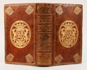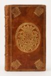 ARNOBE. DISPUTATIONUM ADVERSUS GENTES LIBRI SEPTEM. Hanovre, typis Wechelianis, Claude Marnium, 1603. In-8 de 445-[1], veau blond, fer doré au centre des plats, chiffres couronnés aux angles, filets dorés, dos très orné (reliure postérieure). Reliés à la suite: De idolatrum vanitate. Ex Bibliopolio Frobeniano, 1603. 173-[7] pages. De errore profanarum religionum. Ex Bibliopolio Frobeniano, 1603. 123-[3] pages. Livre de prix offert par François Brunet à Jeanne Lobot, élève du collège de Beaune, aux armes du bienfaiteur (mention manuscrite en latin sur page de garde). François Brunet, seigneur de Montferrand, fils de Philibert, secrétaire du roi, et de Jeanne Taveau né en 1646, devint président de la chambre des comptes de Paris où il mourut le 26 avril 1696. «Grand bibliophile et collectionneur de toutes sortes d'objets d'art et de curiosité, il faisait relier somptueusement la plupart de ses volumes». (O.H.R., pl. 1743). Gardes manquantes sinon bel exemplaire.