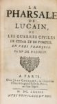 BREBEUF. LA PHARSALE DE LUCAIN ou les guerres civiles de César et de Pompée. En vers françois. …