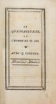 RESTIF DE LA BRETONNE. LE QUADRAGENAIRE, OU L'AGE DE RENONCER AUX PASSIONS. Histoire utile à plus d'un lecteur. Genève et Paris, veuve Duchène, 1777. 2 parties en 2 volumes in-12 de 244 et 244-[12] pages, demi veau raciné, dos lisse orné, t. rouge (reliure du XIX° à l'imitation). ÉDITION ORIGINALE réaliste où Restif mêle son aventure avec Virginie et celles épistolaires des jeunes et jolies filles de mode de la rue de Grenelle et de l'amusement qu'il prenait le soir avec elles. C'est le premier ouvrage de Restif qui fut illustréet les 15 planches par André Dutertre qui l'accompagnent sont très vivantes; l'auteur voulait qu'à 40 ans l'on soit marié et l'on devienne père de famille! Cet ouvrage était épuisé en 1788, suivant le catalogue que Restif publia de ses ouvrages. Bel exemplaire complet des 12 pages contenant la revue des ouvrages de l'auteur. Rousseurs éparses. (Rives-Childs, p.245) (Gay III, 899). Provenance: Bibliothèque Marcuard (ex-libris).