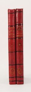 RESTIF DE LA BRETONNE. LES NOUVELLES CONTEMPORAINES, ou histoires de quelques femmes du jour. Paris, Imprimerie de la Société Typographique, An 10-1802. 2 volumes in-12 de 214 et 215 pages, demi-chagrin rouge, dos lisse (reliure de l'époque). Édition originale. Dernier livre paru du vivant de Restif pour faire suite aux Contemporaines, les nouvelles contemporaines forment un recueil d'histoires libres choisies et remaniées sous une forme moins personnelle et avec des détails nouveaux. Le portrait manque, comme souvent. Dos passé et légèrement frotté, pâles rousseurs. Cachet d'un salon littéraire aux titres. (Rives Childs, p. 343) (Lacroix, p. 430).