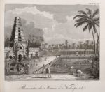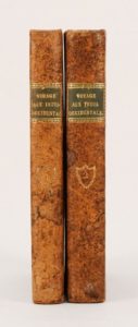 HAAFNER (J.). VOYAGES DANS LA PENINSULE OCCIDENTALE DE L'INDE et dans l'île de Ceilan. Traduits du hollandois par M. J. Paris, Arthus-Bertrand, 1811. 2 volumes in-8, veau marbré, dos lisse (reliure de l'époque). Première édition française ornée de 5 belles planches dont 3 dépliantes (Chauderie de Darma-Oer, Devedaschie, rencontre à Nabapeent, les 5 temples de Maweliewarom), dont quatre d'après les dessins de l'auteur, toutes gravées par Euphrasie Piquenot. Le tome premier contient le voyage de Madras par Tranquebar à Ceylan; le second, le voyage fait par terre le long des côtes d'Orixa et de Coromandel (Chadenat, 5381, 4 pl.). Coins un peu émoussés, rares rousseurs.
