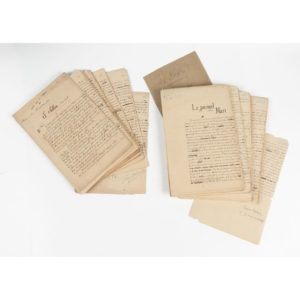 MANUSCRITS. - DELARD (Eugène). 2 manuscrits autographes signés. - Le Journal d'un Mari. Texte complet du roman, 200 pages écrites au recto, avec corrections, ajouts et suppressions. Commencé le 10 septembre 1896, fini le 25 avril 1897. Le roman est paru en 1899 chez C. Lévy sous le titre : Le Désir, journal d'un mari. - Le Sillon. Étude sociale. Texte complet du roman, 151 pages écrites au recto, avec corrections, ajouts et suppressions. Composé de septembre à décembre 1892, il est paru en feuilletons dans Le Figaro en novembre et décembre 1894. Déchirures avec petits manques à qq feuillets. Eugène Delard (1838-1958) collabora à la Revue des deux mondes et à la Grande revue, et publia plusieurs romans et pièces de théâtre. Il fut également conservateur du Musée Galliera.