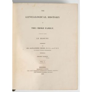 CROKE (Sir Alexander). The Genealogical history of the Croke family, originally named Le Blount. …