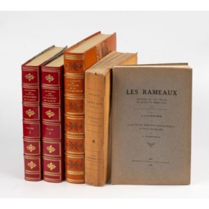 DIVERS. - LACROIX (A.). Romans et le Bourg-de-Péage avant 1790. Valence, Jules Céas et fils, 1897. In-4, demi maroquin fauve avec coins, dos à nerf orné, tête dorée, couv. cons. et dos. (F. Durand). On joint : - PATOIS. - ROYER. Les Rameaux, mystère du XVIe siècle en dialecte embrunais. Gap, Imprimerie Louis Jean, 1928. In-8, broché. - CHEVALIER (Ulyss). Œuvres complètes de Saint Avit, évêque de Vienne. Nouvelle édition. Lyon, Librairie générale catholique et classique, 1890. In-8, broché. - ROCHAS (Adolphe). Documents dauphinois, VIII Journal d'un bourgeois de Valence, du 1er janvier 1789 au 9 novembre 1799. Grenoble, F. Allier, 1891-1892. 2 volumes in-8, demi-maroquin bordeaux, dos à nerfs orné, tête dorée, couv. cons. (Rel. moderne). Tirage à 250 exemplaires. Un des 50 de tête sur hollande. Expert : Ségolène Beauchamp