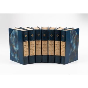 GROSIER (Jean-Baptiste). De la Chine, ou Description générale de cet Empire, rédigée d'après les mémoires de la mission de Pé-kin. Paris, Pillet & chez Arthus Bertrand, 1818-1820. 7 vol. in-8, demi-basane bleu marine, étiquette imprimée d'origine collée entre les nerfs (Rel. moderne). Troisième édition revue et considérablement augmentée, de cet ouvrage de référence sur la Chine. Complet de la grande carte dépliante de la Chine. Manque la carte dépliante de la Tartarie chinoise. Manque la table des matières du tome 4, paginée 509 à 512.