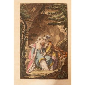 LA FONTAINE (Jean de). Contes et nouvelles en vers. Paris, Tourneisen, 1808. 2 vol. in-8, chagrin vert, double encadrement de filets dorés, dos à nerfs orné , tr. dorées (Bruyère). Rare édition, reproduisant celle parue chez Didot Jeune en 1796 ornée des 83 figures d'Eisen tirées de l'édition des Fermiers Généraux de 1762. Exemplaire imprimé sur papier vélin, complet du titre gravé en noir et des 83 figures, toutes en couleurs et avant la lettre. Rousseurs importantes. Tome I, second plat insolé. Tome II, second plat éraflé.