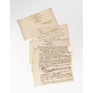 [PROUDHON (Pierre-Joseph)] De la critique et des idées dans la démocratie française à propos de la Guerre et de la Paix journaliste, économiste et philosophe français, théoricien du socialisme (1809-1865). Manuscrit autographe signé en tête : De la critique et des idées dans la démocratie française, à propos de guerre et de paix, Paris, 1861, 5 pages de format oblong sur papier libre. Copie des premières pages du manuscrit conservé à Besançon, BM du Doubs, MS 2859 (Collection Pierre-Joseph Proudhon, numérisation : https://culture.besancon.fr/ark:/48565/dj7t5wx4znhs). Cette copie est autographe et manuscrite. La comparaison des deux manuscrits permettra sans doute de noter des divergences pour ce texte encore inédit. Nous en relevons dès le début p. 3 et il s'agit peut-être des 5 premières pages d'un exemplaire corrigé par Proudhon. La comparaison entre les deux exemplaires sera éclairante.
