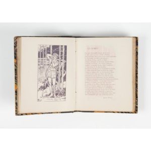 REVUE. L'Hémicycle ; Revue illustrée mensuelle de Littérature et d'art. Lille puis Étampes, L. Didier des Gachons, 1900. In-12, demi-maroquin bleu nuit, dos lisse orné en long, couvertures des livraisons conservées (Rel. de l'époque). Tête de collection complète, 1ère année en 11 livraisons (juin & juillet réunis). La revue parut ensuite en 6 numéros en 1901, et en 1902, elle disparut. Revue littéraire fondée par les frères Des Gachons, André en étant le directeur artistique, et à laquelle participèrent Gide, Gourmont, Jammes, Verhaeren, Paul Fort, Kipling, d'Annunzio, Ch.-Louis Philippe… Illustrations de Des Gachons, Coudray, Paul Berthon, Rup, Vallotton… Bulletins de souscription joint.
