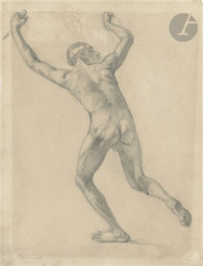 Indien dansant vu de dos, étude pour l’Indien tenant un scalp, au centre de la gravure (1842) représentant l’attaque du Fort McKenzie en 1833.