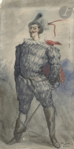 Maurice SAND (1823-1889). — Aquarelle originale, signée et datée en bas à droite «M. Sand 1849» ; 24,3 x 12,5 cm.