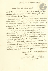 Luigi CHERUBINI (1782-1842). — L.A.S., Paris 6 mars 1837, à Louis Jadin à Versailles ; 1page in-8, adresse.