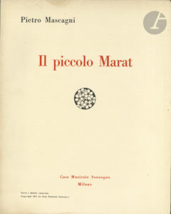 Pietro MASCAGNI (1863-1945). — Il piccolo Marat (Milano, Casa Musicale Sonzogno, 1921) ; in-fol., broché.