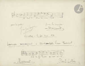 Jules MASSENET (1842-1912). — P.A.S. musicale, Versailles 20 mai 1894 ; 1page oblong in-4.